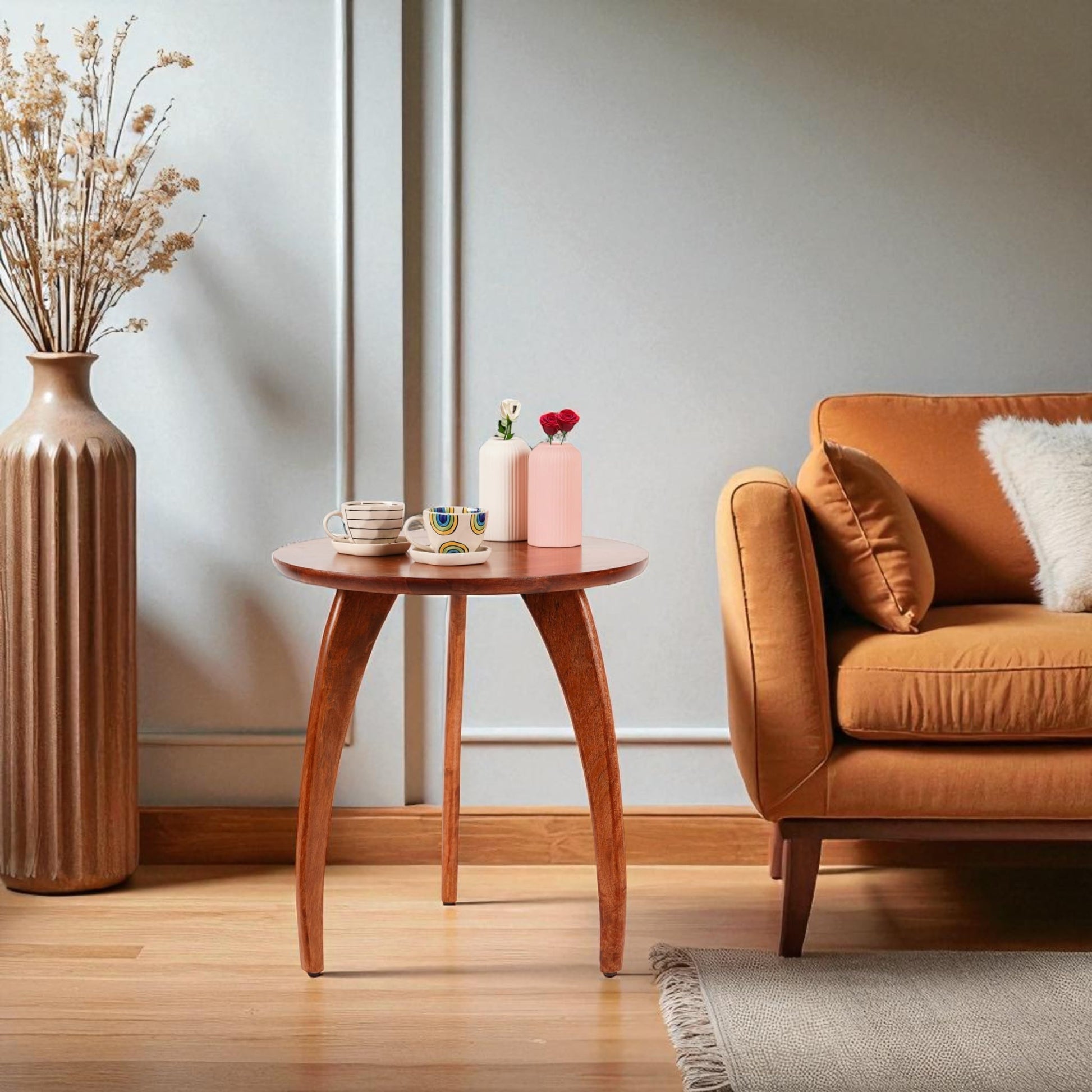 .Enhance your living space with this elegant round wooden coffee table crafted from premium mango wood. Designed as a stylish center table, it adds warmth and sophistication to any room.