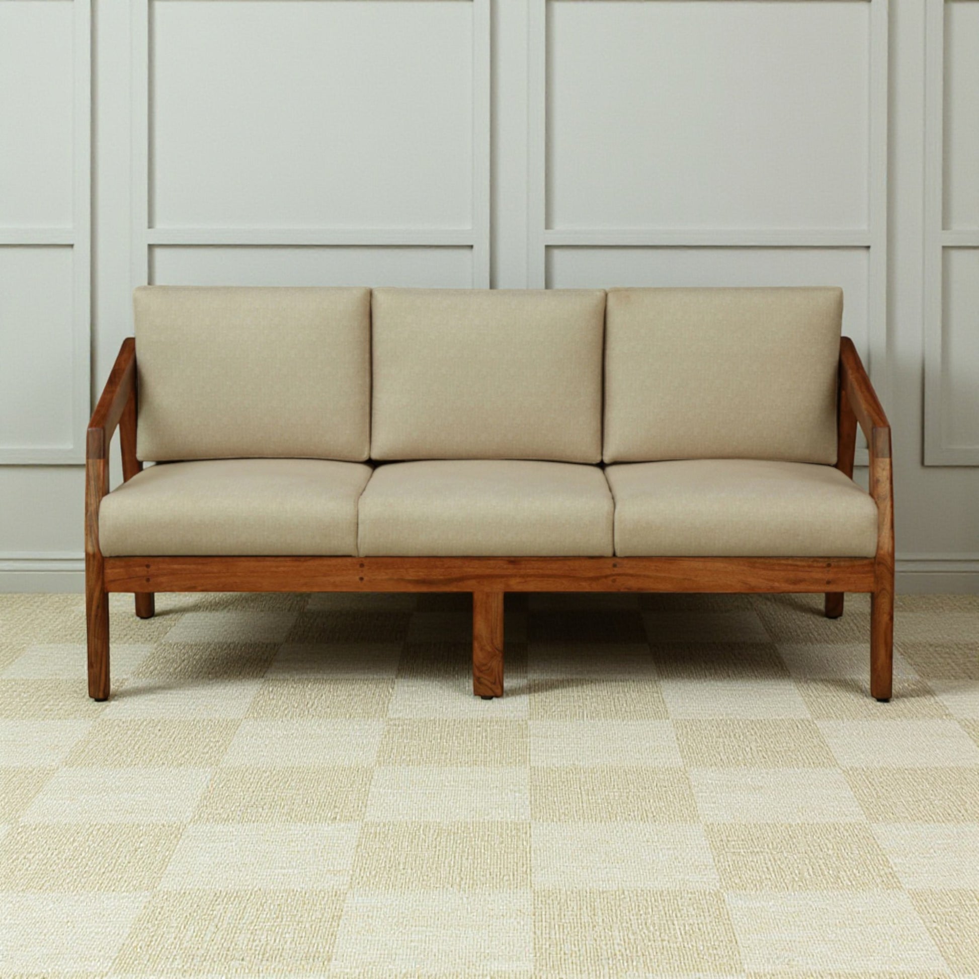 Wood Curls Arden Acacia Wood 3-Seater Sofa in Beige Upholstery