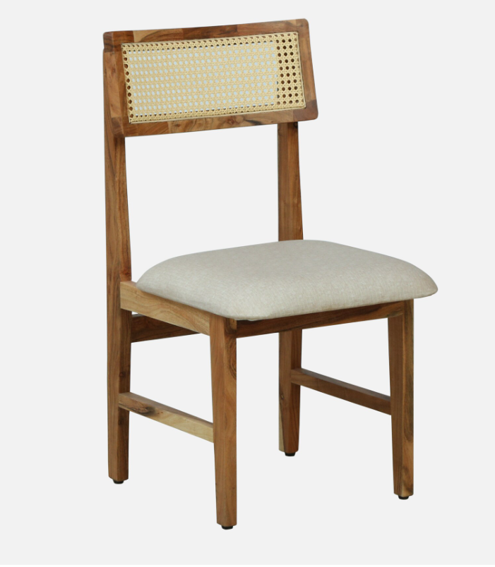 Experience the timeless charm of the Wood Curls 4 Seater Arcane Dining Set, crafted from solid Acacia wood. Its clean lines and rich, natural grain create a warm, inviting atmosphere, while the handwoven cane backrests and upholstered seats offer both comfort and elegance. Finished with a smooth natural touch, this dining set complements modern, rustic, and Scandinavian decor effortlessly. Perfect for intimate dinners or lively family breakfasts, it transforms your dining space into a place where unforgettable moments unfold.